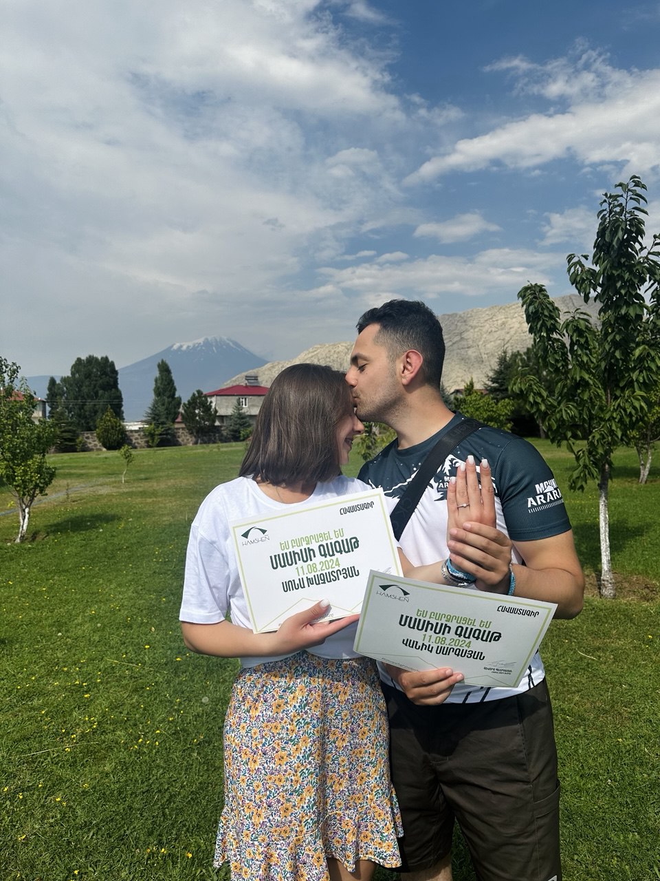 բացօթյա, անմոռանալի վայրում՝ Քասախ գետի ափին։ Պսակադրության արարողությունը տեղի
